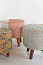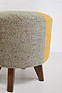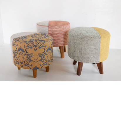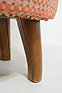 ソファーの傍ら、フットレストとしても良し、ドレッサースツールとしても良し。安定感のある存在です。その短い脚は使い道が無い様に思われた椅子の脚の端材が生かされています。