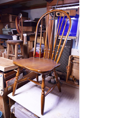 折れた場所などを考慮して、補強をしています。同時に座面や背もたれに塗装の劣化もあったので、着色、部分塗装をしています。