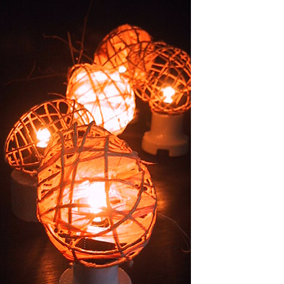 和紙、ワイヤー、紙、竹、麻